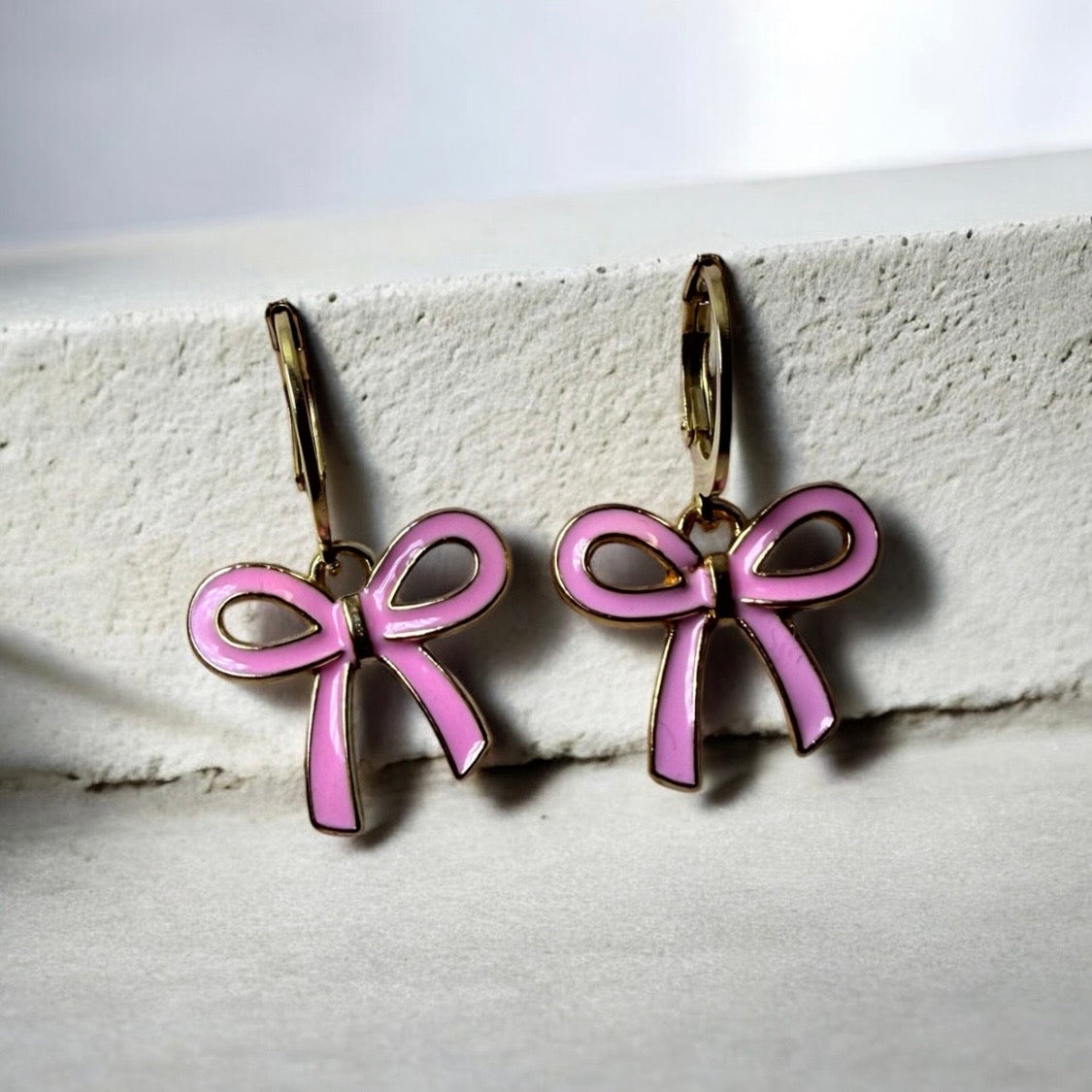 Embrace the delicate artistry of these gold-plated bow huggies, where understated elegance meets refined sophistication. Each piece is a tribute to grace, subtly adorning the ear with a touch of whimsy, inviting admiration and enhancing the allure of any ensemble. A quintessential accessory for the discerning individual who appreciates the finer things in life.