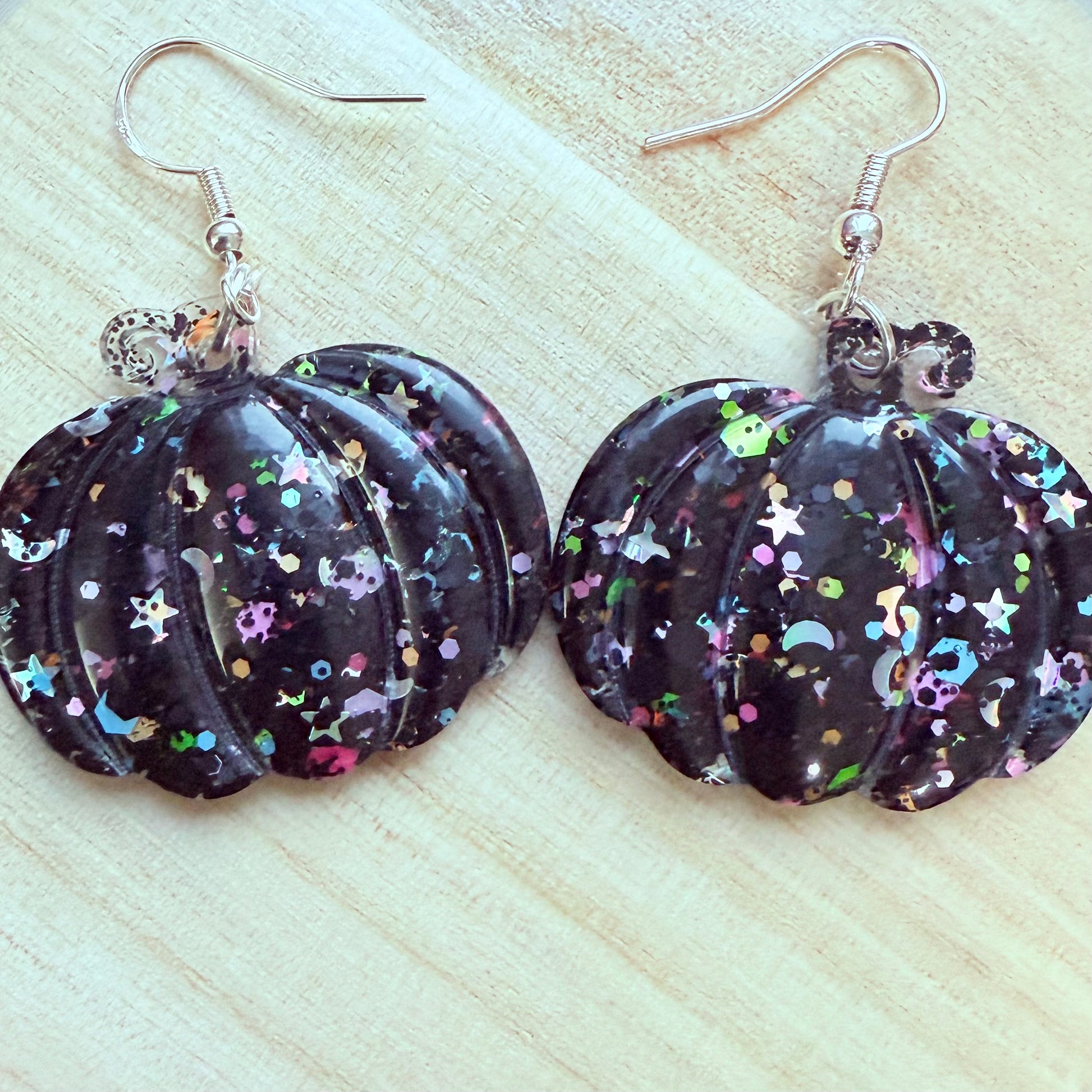 Add a touch of Halloween magic to your style with these Hocus Pocus Pumpkin Earrings. The silver plated wires hold whimsical pumpkins with a mix of enchanting glitter. Perfect for any bewitching outfit. (Can we say witch-tastic?)