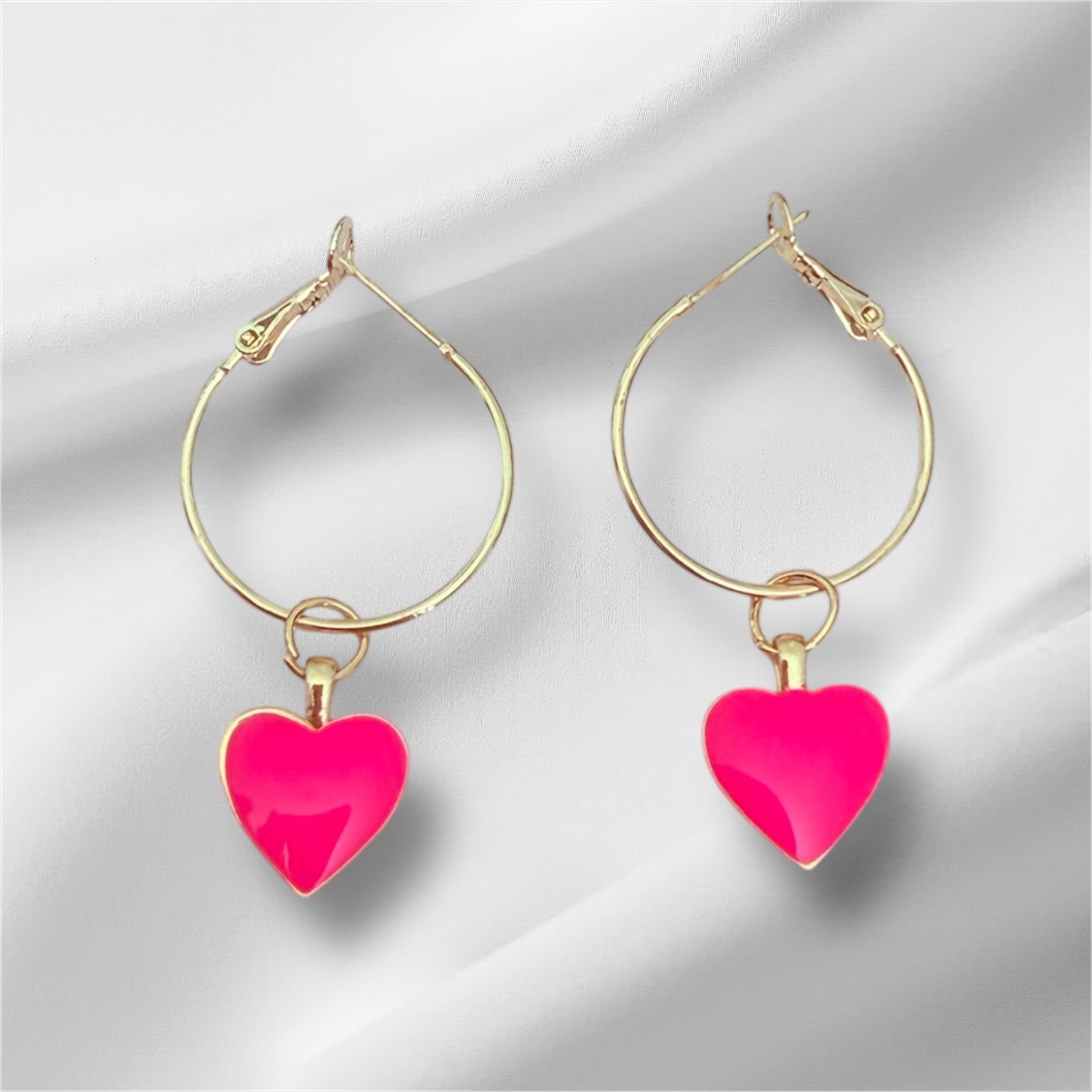 Indulge in the luxurious and exclusive style of our hot pink heart hoops. These elegant gold plated hoops feature stunning hot pink hearts, adding a touch of sophistication and glamour to any outfit. Elevate your look and express your unique sense of style with these tastefully crafted hoops.